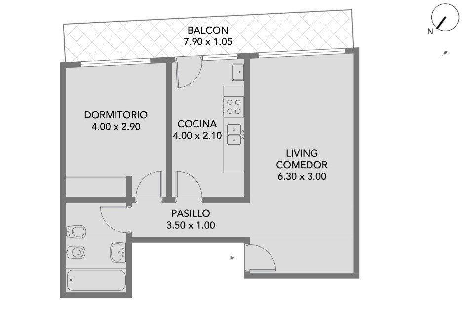 SEMIPISO. 2 AMBIENTES. BALCON CORRIDO. CONTRAFRENTE.